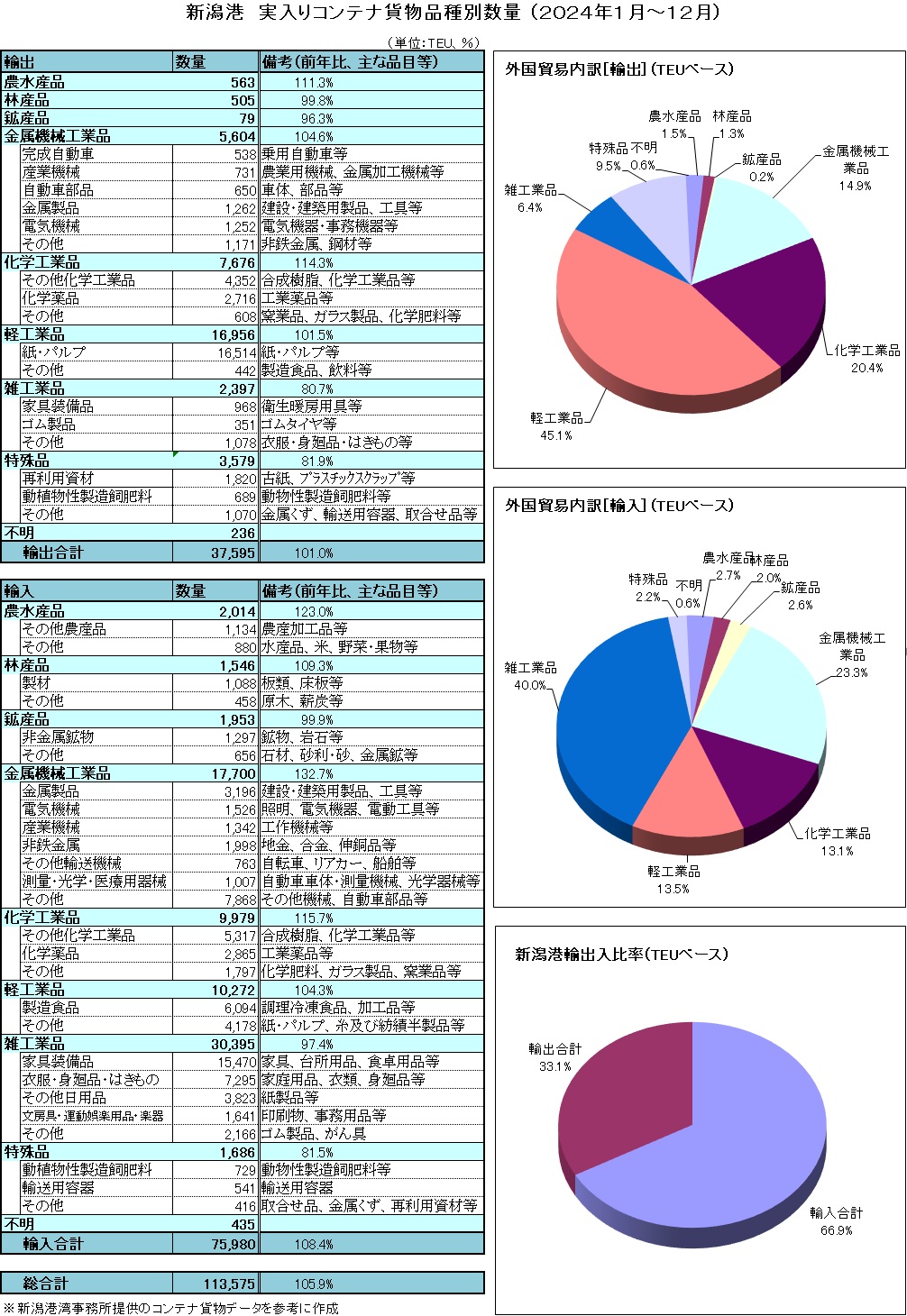 新潟港 実入りコンテナ貨物品種別数量(単位:TEU)